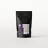 Pack of dark purple fabric dye placed on a vibrant purple fabric background